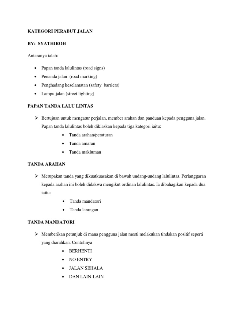 Tahun 4 Perabot Jalan Raya Sumber Pengajaran